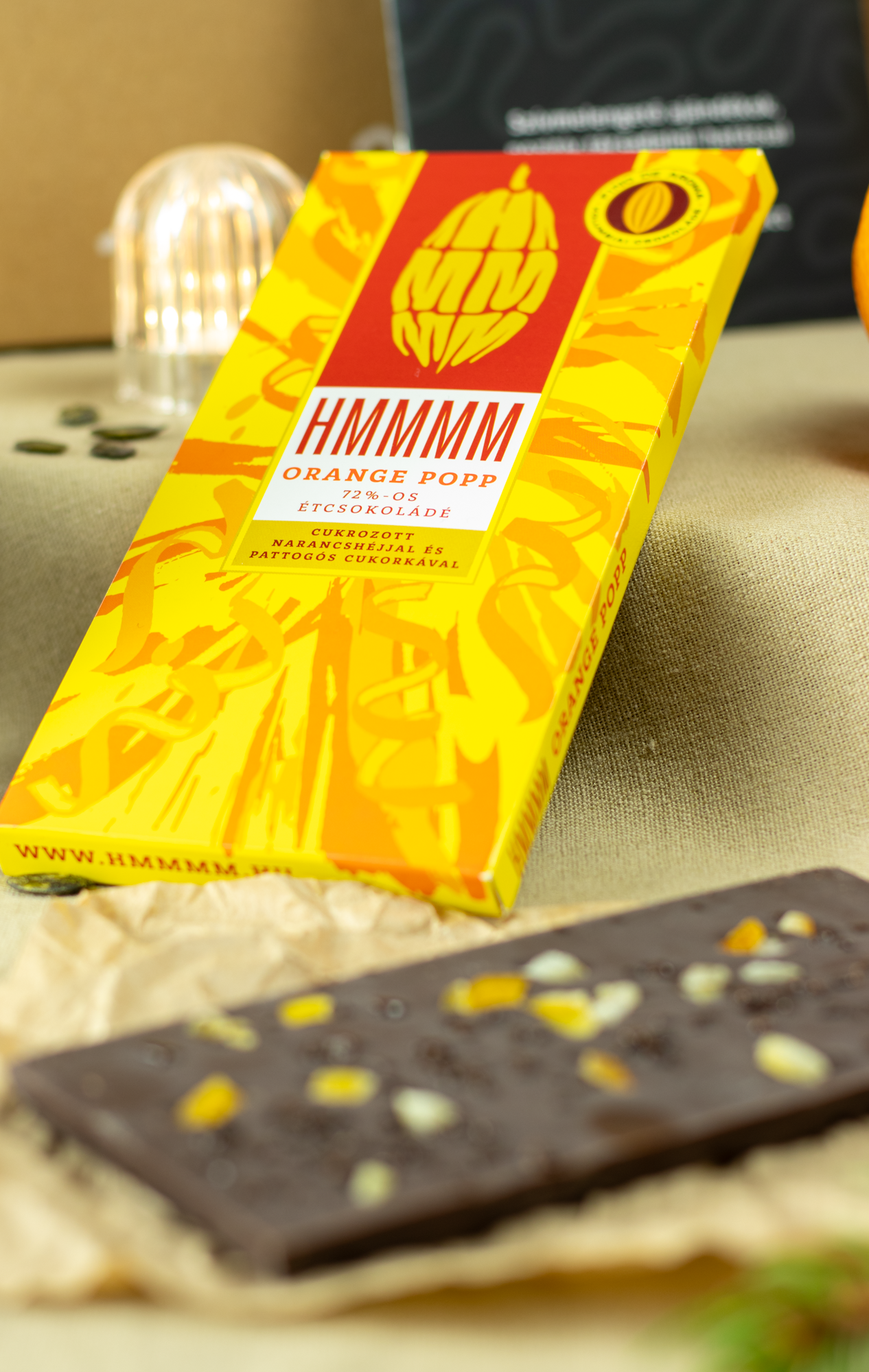 - Hmmmm Orange Popp single origin narancsos étcsokoládé pattogós cukorkával, 70g